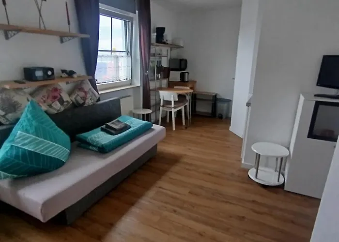 Obiekt oferuje również aneks kuchenny. Najbliższa restauracja to Landgang, która znajduje się nie więcej niż 1 km od tego apartamentu i serwuje potrawy kuchni śródziemnomorskiej. Apartament o powierzchni 65 m^2 znajduje się w zasięgu ręki od najbliższego przystanku autobusowego Peter-Kloeckner-Strasse.